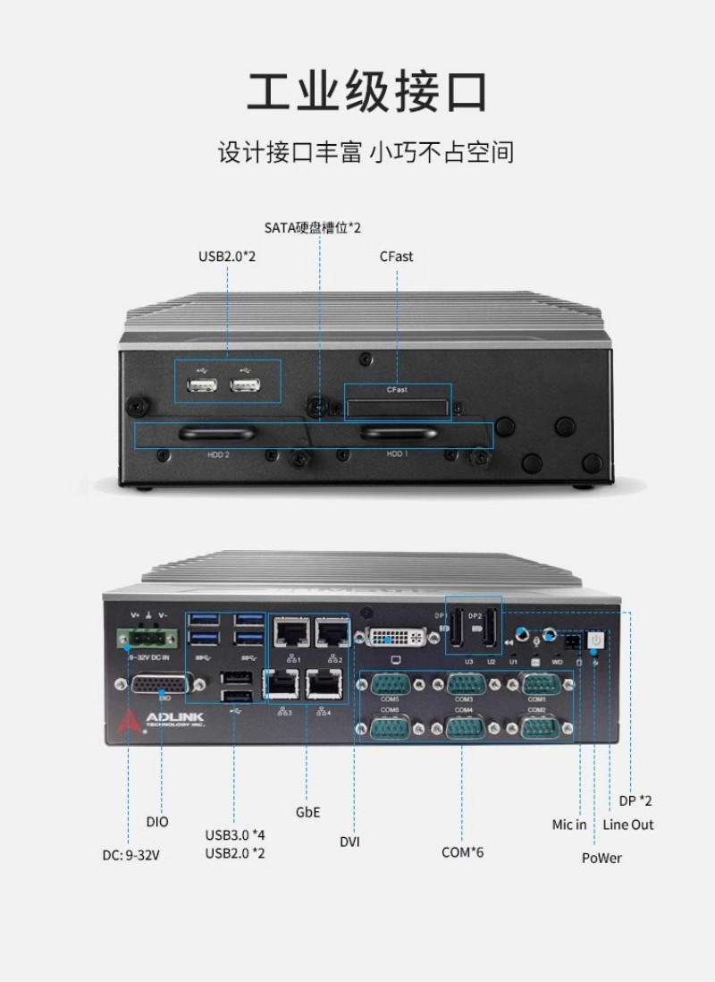 二、接口豐富:滿足多樣化的工業應用場景多樣化的I/O接口。為了適應復雜的工業應用場景,嵌入式工控機通常配備了極其豐富的I/O接口。例如,多個串口(如RS232/422/485)、千兆以太網口、高速USB接口、CAN總線以及GPIO等功能一應俱全。這種高度的靈活性使得工控機能輕松連接傳感器、PLC、執行器、工業相機等多種外部設備,快速搭建起一個完整的視覺檢測系統或機器人控制方案,并實現多樣化的數據采集、交互與控制功能。無論是定制工控機還是標準品,豐富的接口都是其關鍵價值所在。